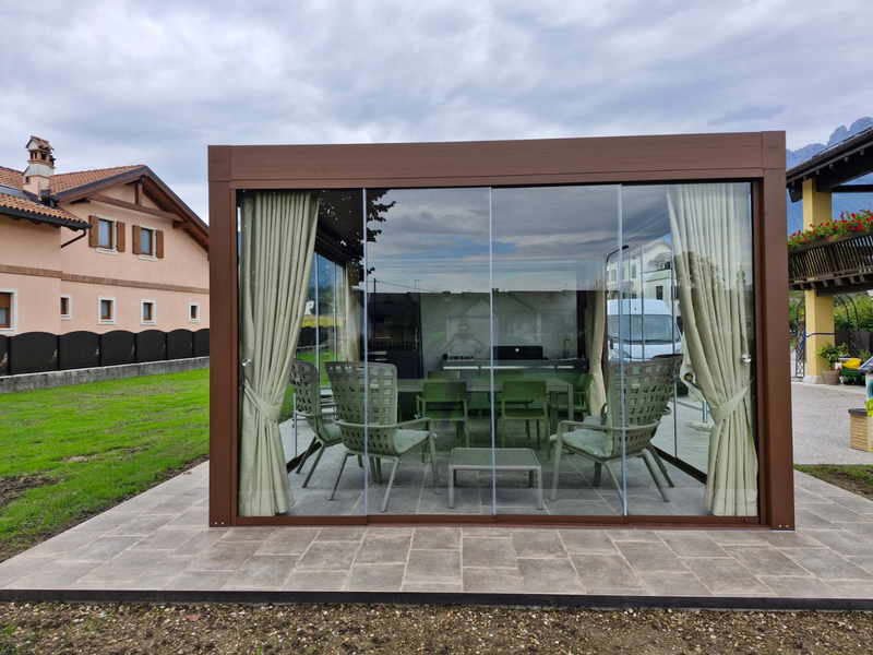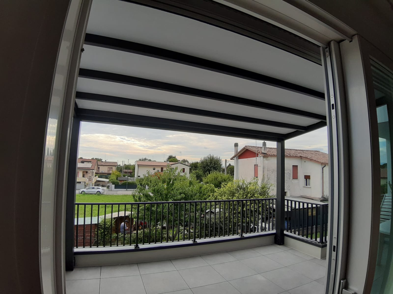 La struttura offre protezione dal sole e dalle intemperie, permettendo di vivere il terrazzo ogni giorno con maggiore comodità.
