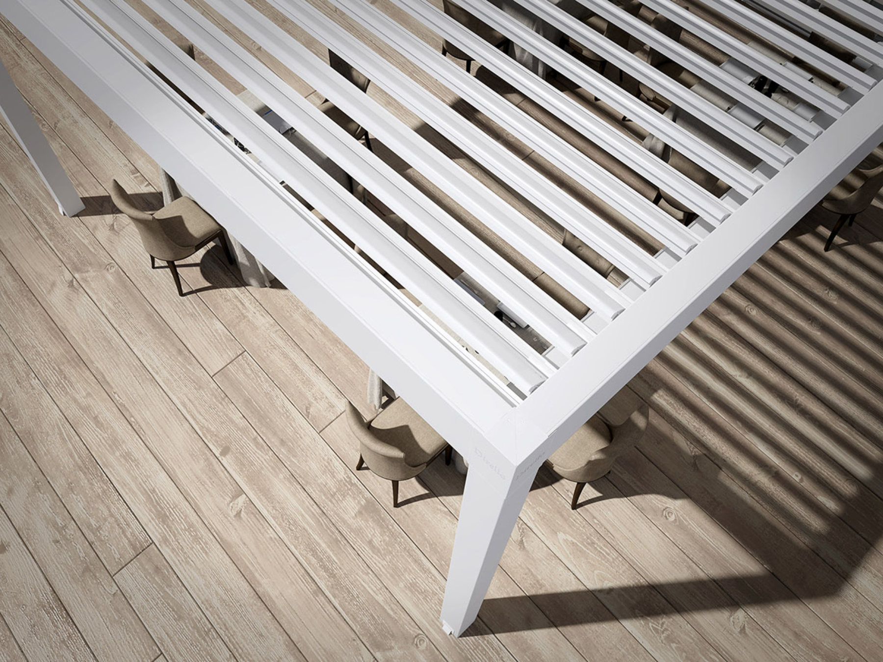 Bioair è la pergola bioclimatica che unisce design, tecnologia e benessere microclimatico in una struttura modulare e versatile.