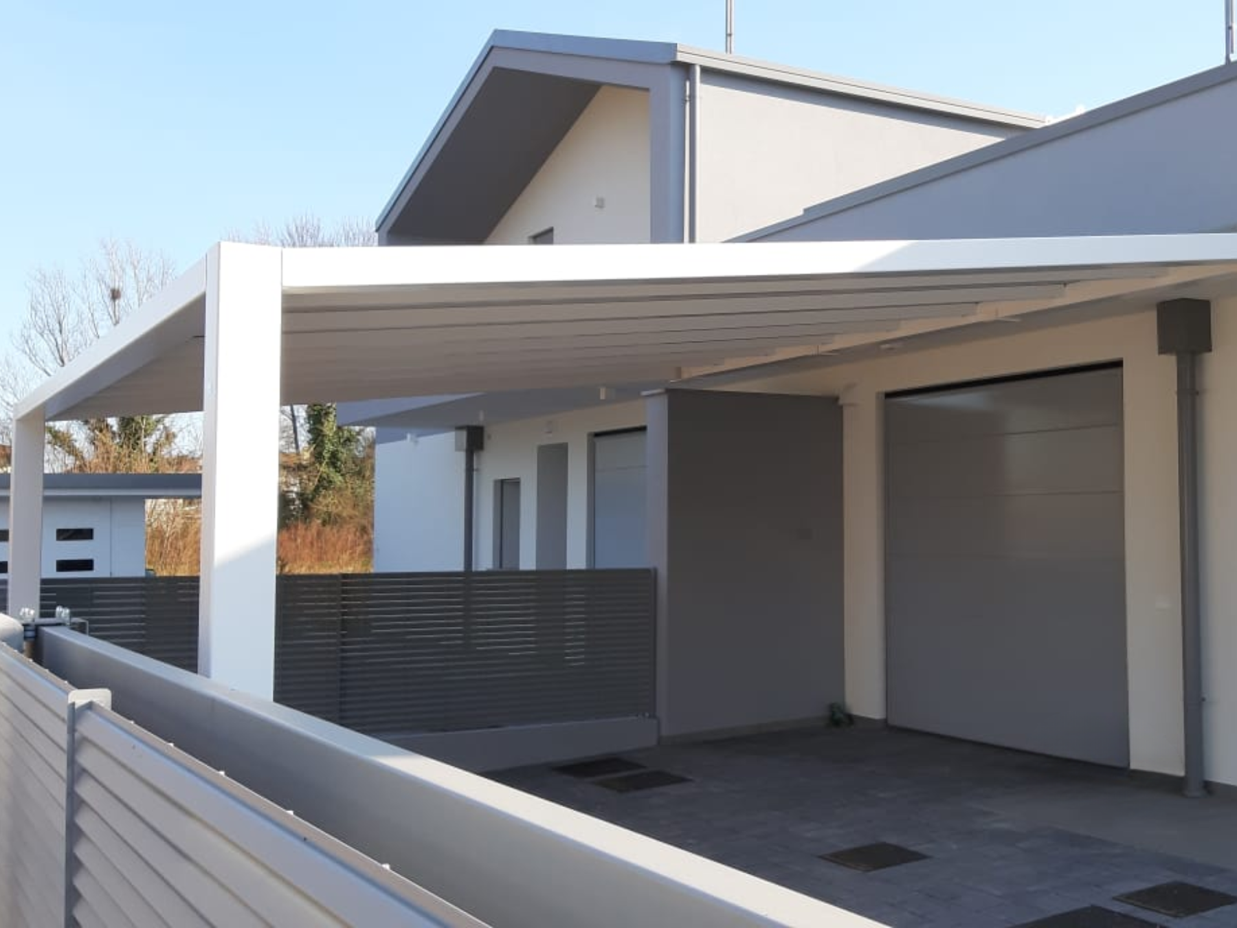 L’illuminazione integrata valorizza la pergola con un effetto uniforme e discreto, garantendo sicurezza e comfort anche di sera. Il sistema può essere dotato di sensore di movimento, che attiva automaticamente le luci al passaggio, ottimizzando l’efficienza energetica e la praticità d’uso.