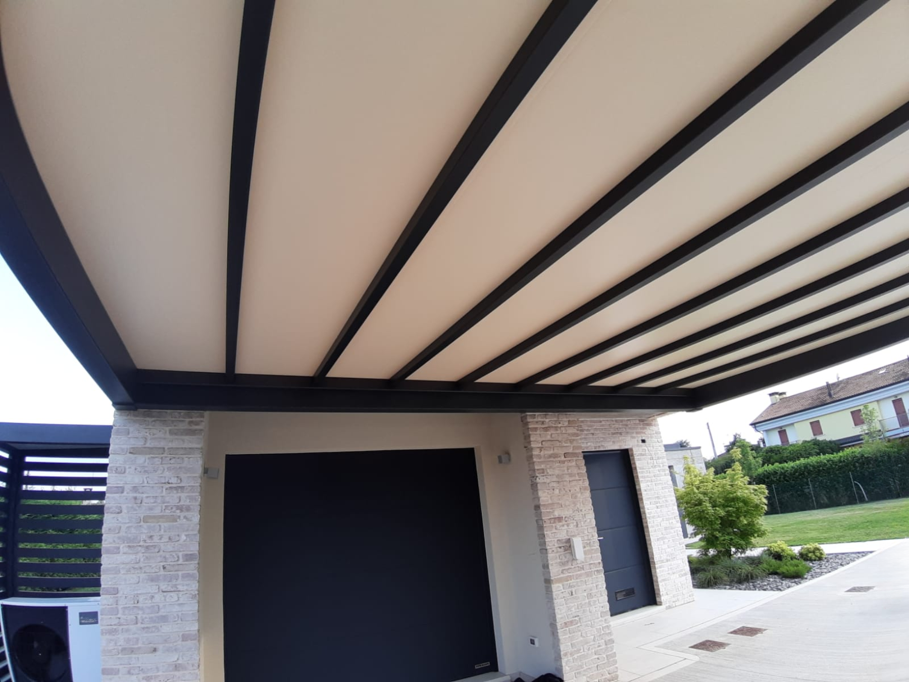 La copertura in PVC ignifugo e la gronda integrata garantiscono protezione efficace in ogni stagione, mentre la possibilità di chiudere e personalizzare ogni lato consente di trasformare lo spazio esterno in un ambiente su misura, da vivere in ogni momento dell’anno.