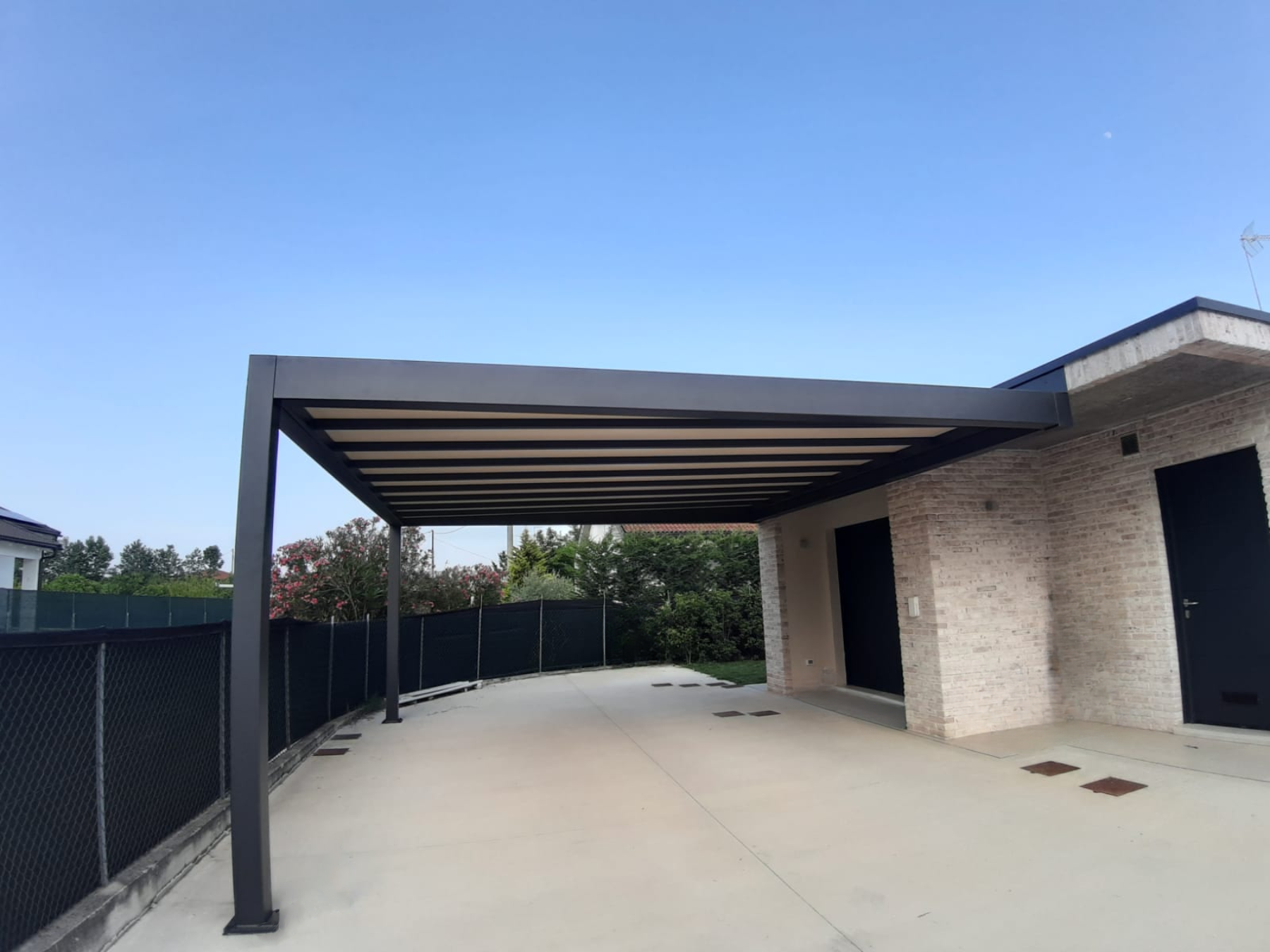 L’illuminazione integrata valorizza la pergola con un effetto uniforme e discreto, garantendo sicurezza e comfort anche di sera. Il sistema può essere dotato di sensore di movimento, che attiva automaticamente le luci al passaggio, ottimizzando l’efficienza energetica e la praticità d’uso.