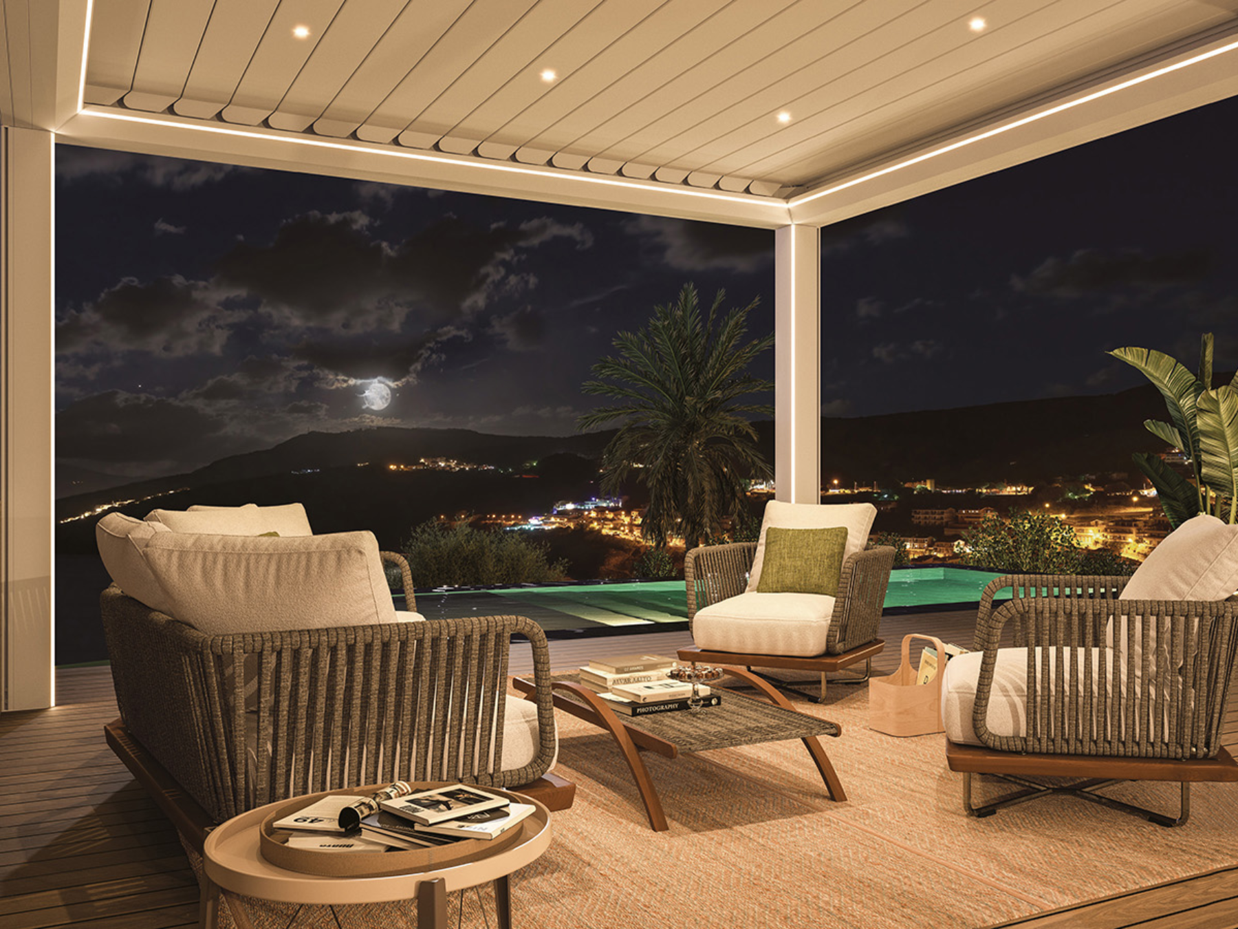 Grazie ai meccanismi motorizzati e agli accessori, la pergola bioclimatica può diventare il luogo perfetto da vivere tutto l’anno con qualsiasi condizione metereologica.
