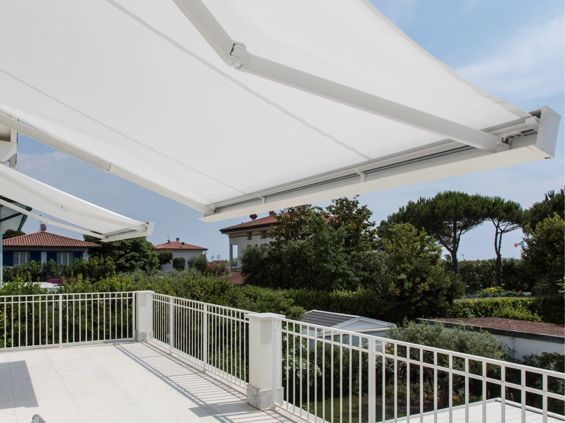 La motorizzazione integrata consente di aprire e chiudere la tenda in modo rapido e silenzioso, senza alcuno sforzo manuale, aumentando il comfort e la praticità d’uso quotidiano.