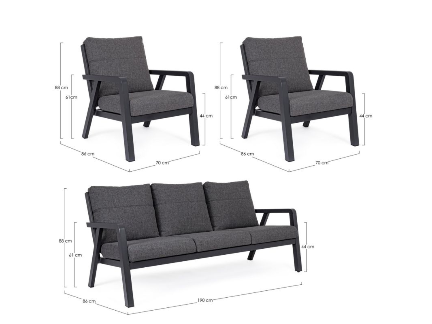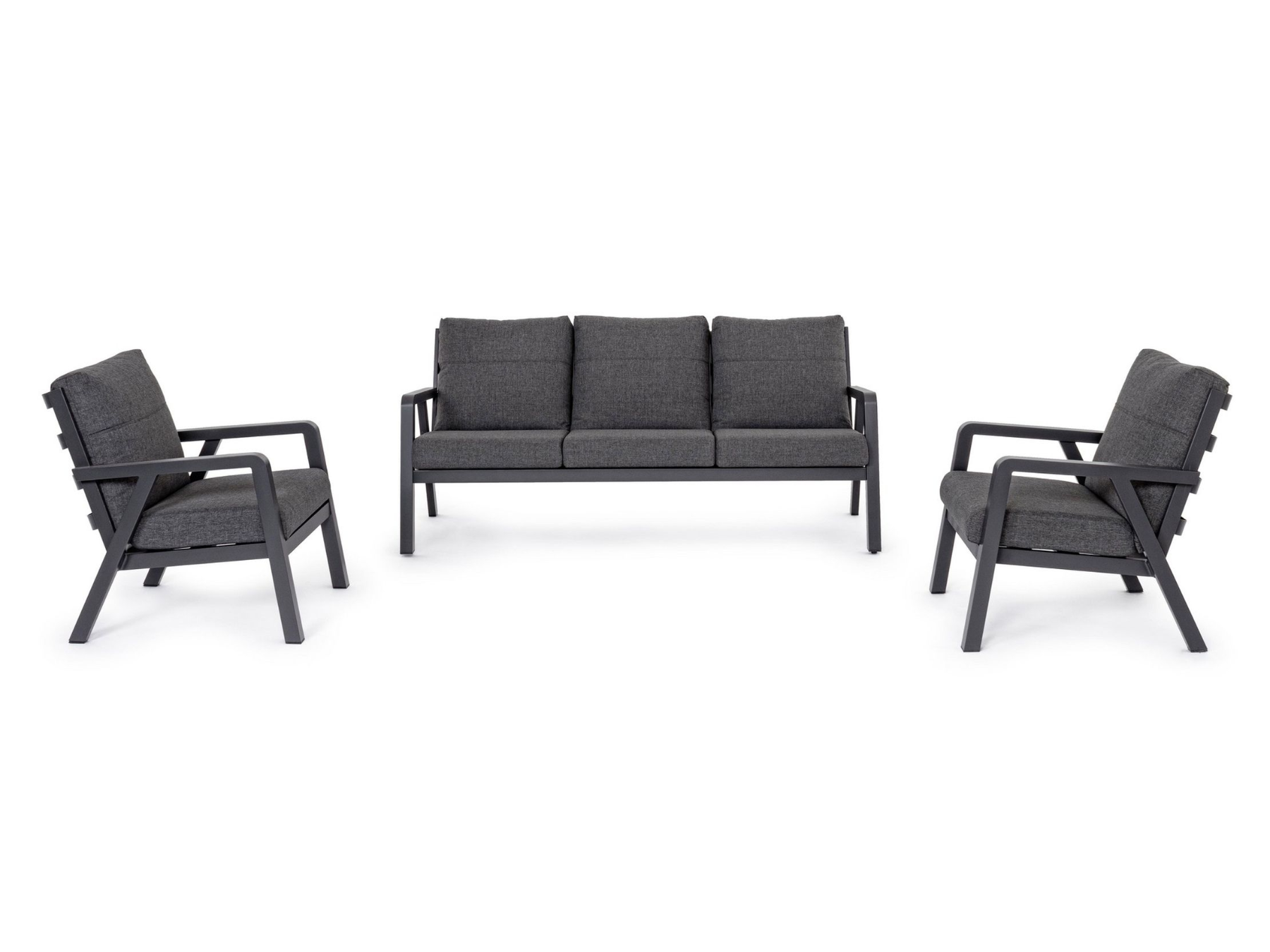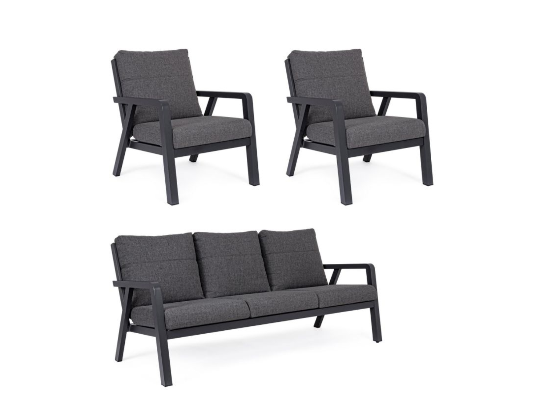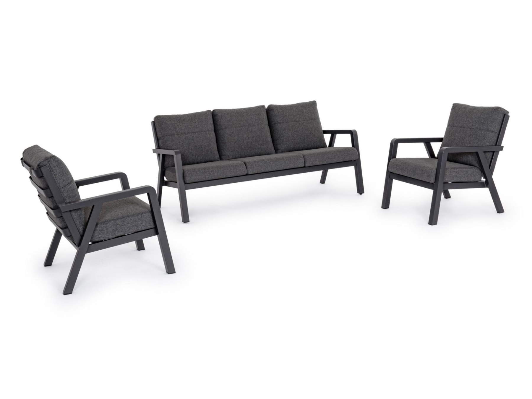 La struttura in acciaio verniciato a polvere garantisce stabilità e durata, mentre i cuscini morbidi poggiano direttamente sulla struttura, offrendo comfort e uno stile moderno.