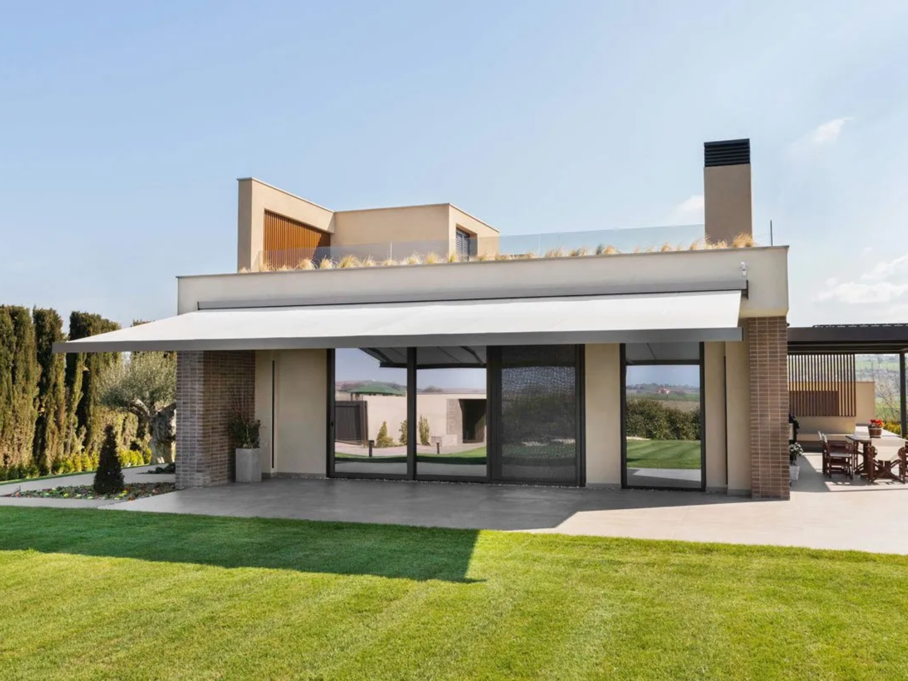 SHAN è sinonimo di maestosità. Non è solo una tenda a cassonetto, è un’icona. Con la sua forma squadrata e imponente, crea zone d’ombra che superano i 35 mq, diventando non solo un elemento funzionale, ma un vero e proprio oggetto d’arredo.